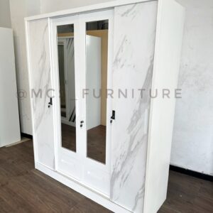 LEMARI BESI 4 PINTU LED MARBLE 1,6 METER