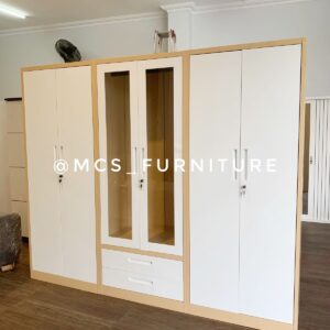 LEMARI BAJU 4 PINTU LACI WHITE OAK