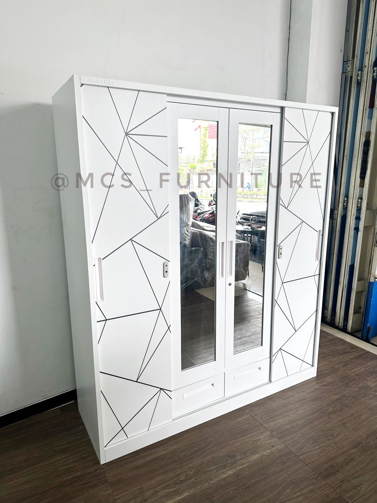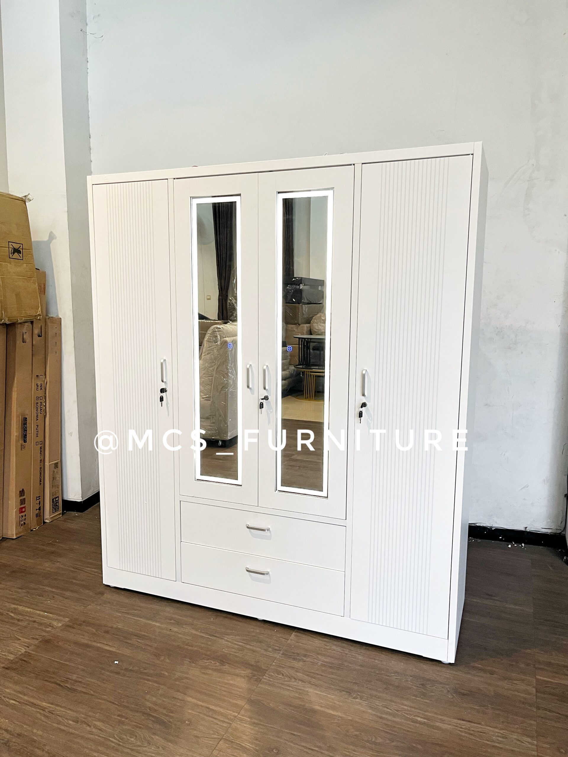 LEMARI BESI 4 PINTU 160 CM CERMIN LED