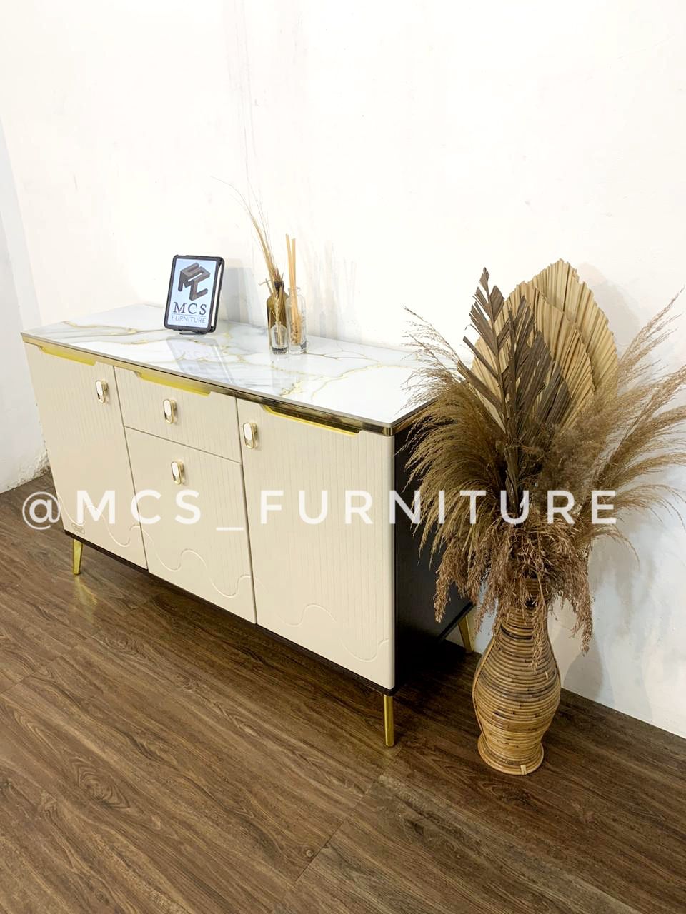 SPESIFIKASI PRODUK: ✅ Bahan: Grade A hardwood particle board (kualitas terbaik). ✅ Tipe furnitur: Bufet