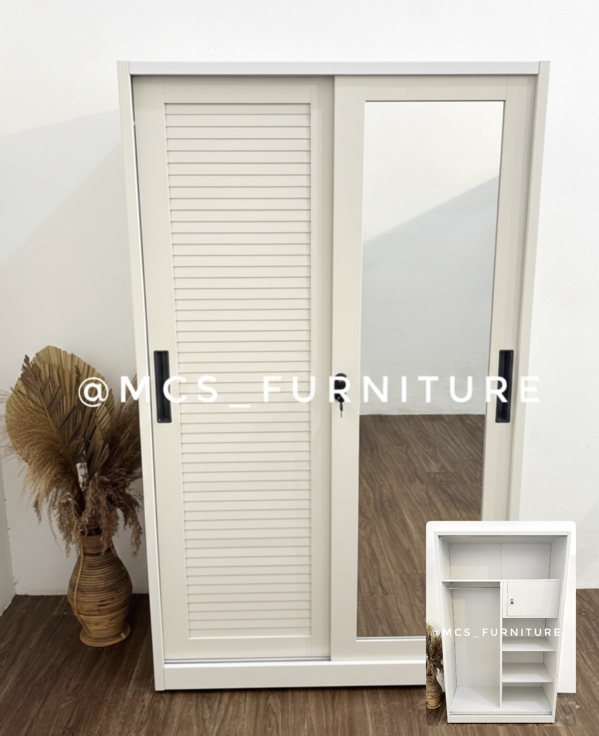 BIG SALE! LEMARI BESI SLIDING 120 CM CREAM