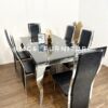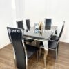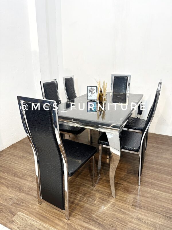 MEJA MAKAN BATU MARMER STAINLESS 6 KURSI HITAM