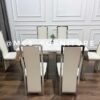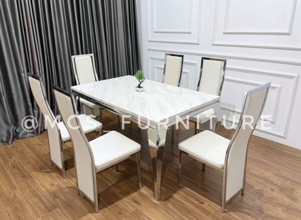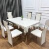 MEJA MAKAN BATU MARMER STAINLESS 6 KURSI PUTIH