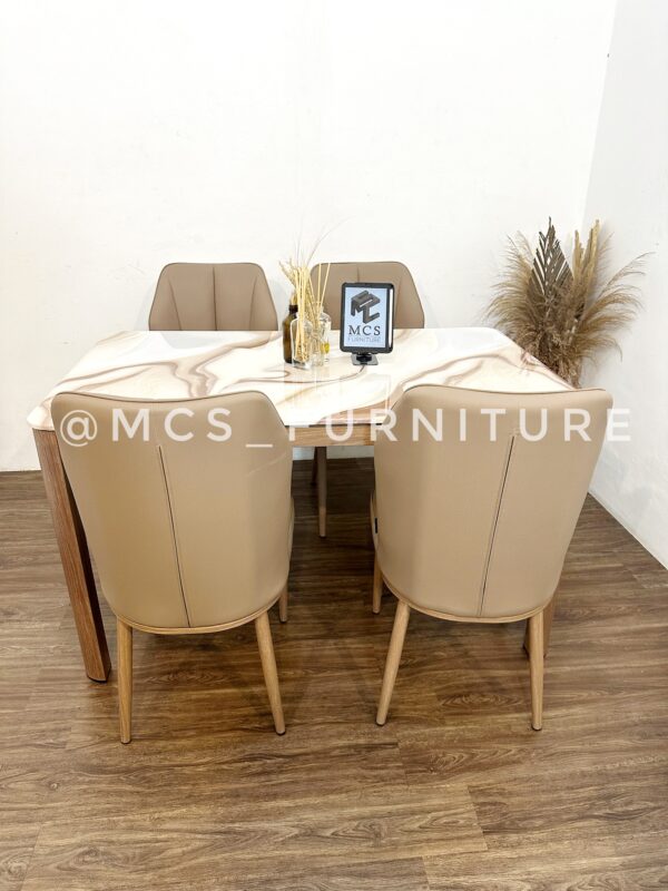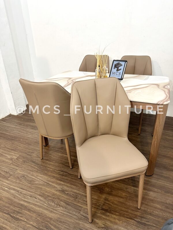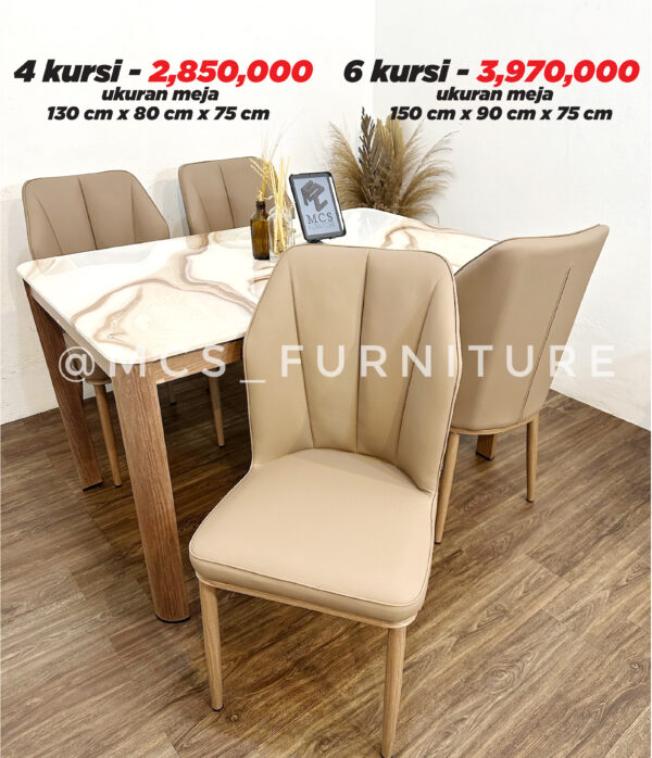 MEJA MAKAN MARMER JUMBO 4 / 6 KURSI KERANG BROWN