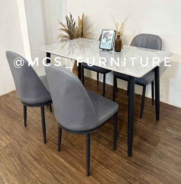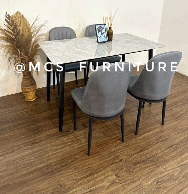 MEJA MAKAN SET 4 KURSI MARBLE GREY GOLD