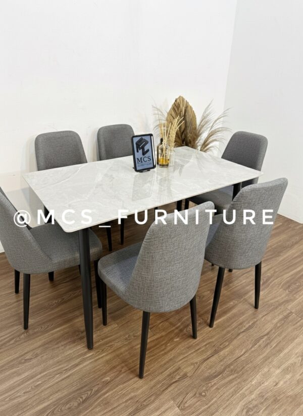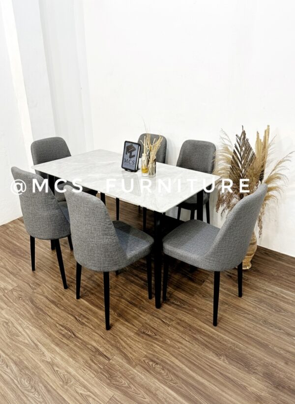 MEJA MAKAN SET 6 KURSI GRANIT WHITE GREY